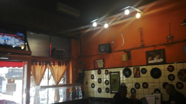 En cuanto a la ambientación, te encontrás con una colección de memorabilia setentosa: discos colgados en las paredes (con estilos tan variados como Michael Jackson, Cacho Castaña, Los Monos y ¡Las Trillizas de Oro!), fotos y dibujos de tango, televisores antiguos (que no funcionan), un par de boleadoras y dos pósters puestos en paralelo de Diego y Messi. También un moderno Led que transmitía en vivo el Mundial de Básquet, cosa que agradó a los comensales antigourmeteros.