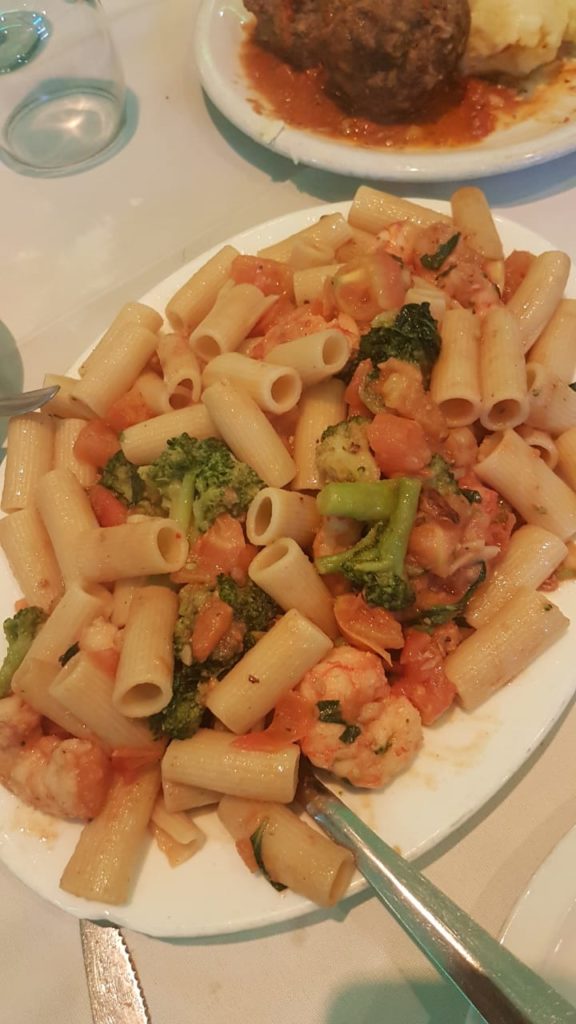 PENNE RIGATI DE CAMPO: Acá Nato ya empieza a dar indicios de su facilidad para inventar nombres que no tengan un carajo que ver con nada. Un talento natural que es muy difícil de encontrar en los bodegones. La pasta viene tapada una salsa de camarones, mejillones, tomate, brócoli y un montón de ajo. O sea, si son penne rigati de campo, podemos agregar que el campo está re contra mil inundado.