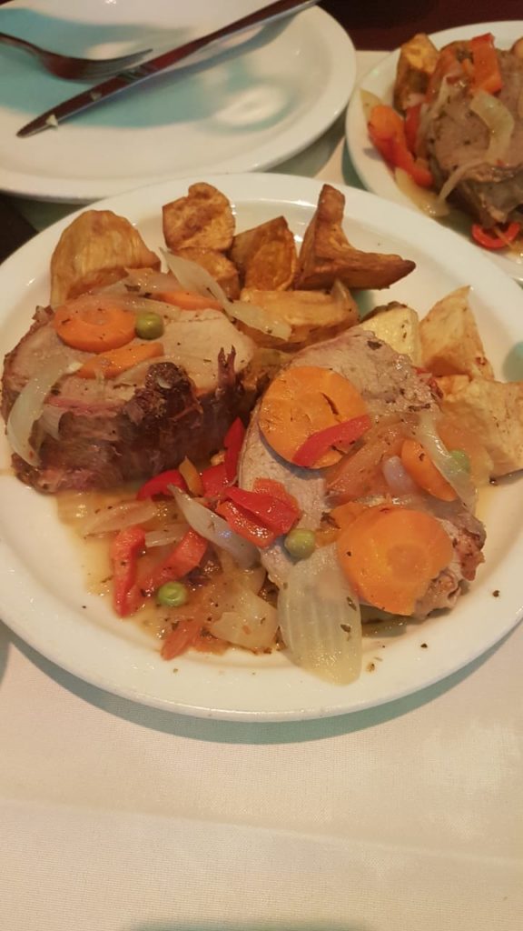 PECETO AL DISCO: Como buenos juninenses, cualquier cosa que venga “al disco” ya nos pone de buen humor. El gustito que tienen las comidas al disco nos trae muchos recuerdos de nuestra ciudad y cada vez que encontramos esta opción en la carta la pedimos. Viene con papas y batatas. Un platazo.