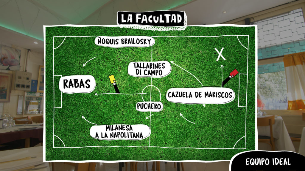 – Por lo menos, vengo cuatro veces por semana. Todo es rico. Creo que ya probé toda la carta como 100 veces. Una vez estaba comiendo y en aquella mesa de allá (señala un rincón del salón) estaban Tito Pizzuti, el Chango Cárdenas, el Bocha Maschio y Oscar Martín. De cholulo le pedí un autógrafo a cada uno. La Facultad es mi segunda casa.