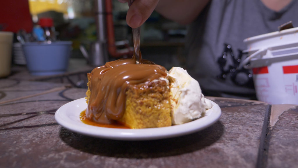FLAN MIXTO: Nato le mete 24 huevos. Naranja Fanta es el color del flancito, que está perfectamente custodiado por la crema y el dulce de leche. El movimiento vibratorio del piso hace que la crema tenga el punto justo.